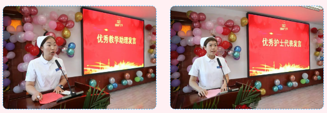 获奖者优秀教学助理代表刘润兰和优秀护士代表曹蒙蒙在发表获奖感言中表示在自己的岗位上,或是凭借精湛的护理技术、或是凭借耐心细致的服务态度、或是凭借勇于创新的探索精神,或是患者、学生的句句赞扬,都是激励我们前行,守护这份初心的坚定。