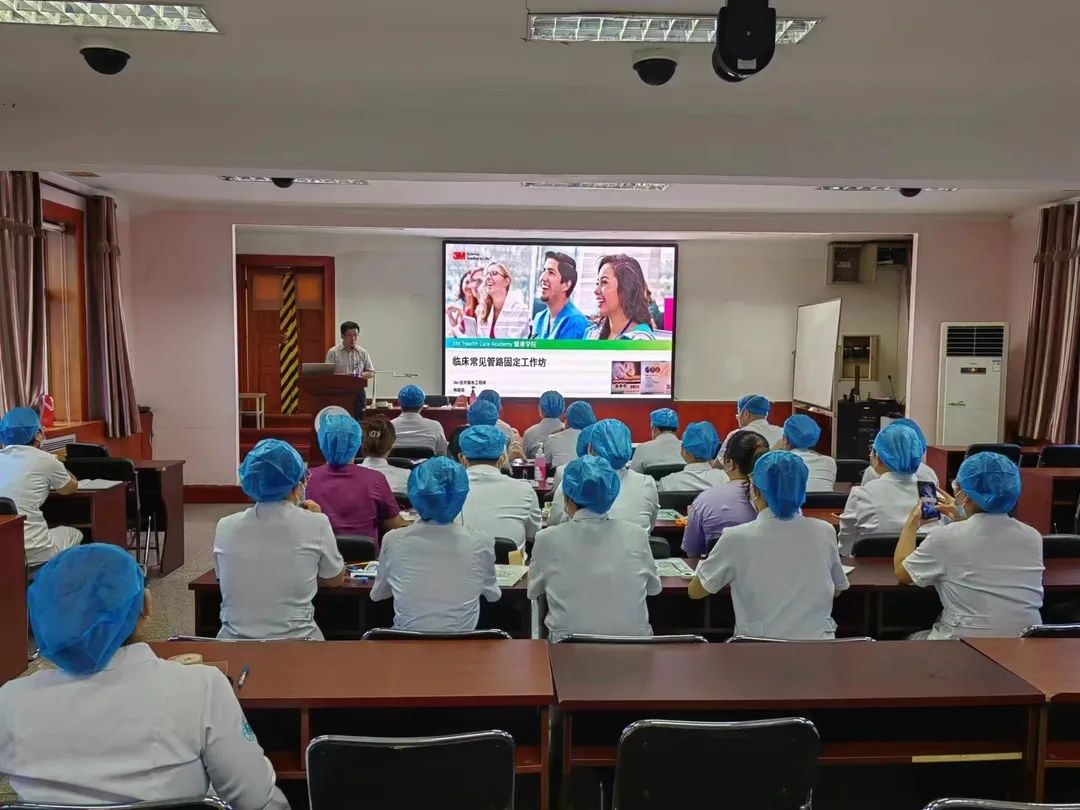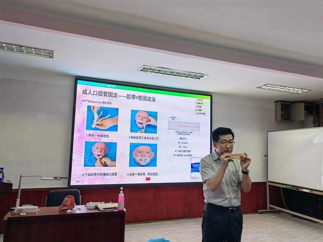 培训由临床护理专家韩老师讲解,首先针对非计划拔管的概况及管路护理的前沿理论知识进行了讲解、接下来针对四种常见管路——鼻胃管、 气管插管 、 导尿管 、 引流管的常见固定方法进行了演示和讲解,理论联系实操,以“为什么要这样固定、为什么3M胶布要选这个长度”等诸多问题带动大家思考,不但增加识记效果,大家还了解了不按要求规范固定的不良后果,使大家受到了警示教育。