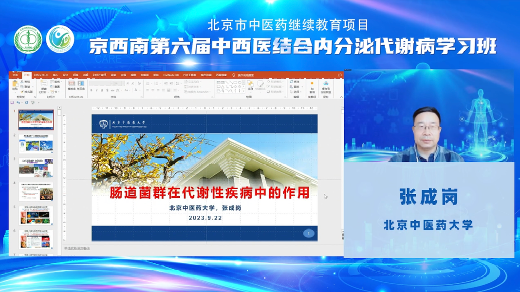 国家中医药发展与战略研究院智库专家,荣获多项奖项,长期从事中医药与肠道菌群研究的北京中医药大学张成岗教授,论述了《肠道菌群在代谢性疾病中的作用》。