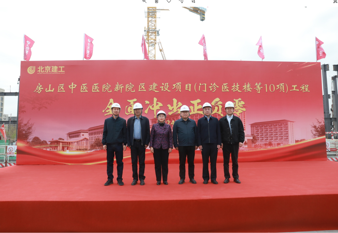 2024年4月8日,房山区中医医院新院区建设项目通过科学统筹、周密组织、抢抓工期,地下结构全面“冲”出正负零,标志着该工程建设全面进入地上结构施工新阶段。北京中医药大学房山医院党委书记郭书文、院长孙鲁英、副院长杨景柳、北京六建集团有限责任公司党委书记、董事长曹常海、北京市房山新城投资有限公司副总经理刘宁、北京华城工程管理咨询有限公司总经理郝兰涛等参加活动,共同见证这一重要时刻。