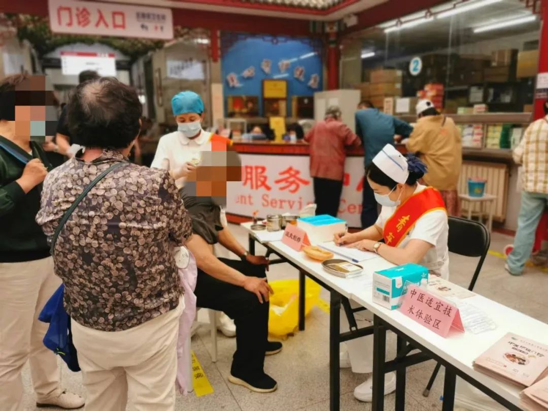 中医适宜技术体验区也是异常的火热,该区域为高血压患者提供特色中医适宜技术-耳穴压丸、穴位贴敷、温灸刮痧等,并为患者提供健康教育。