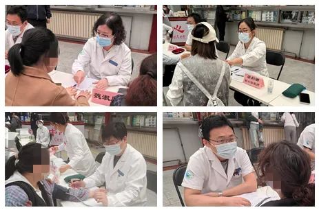义诊活动开始后,门诊患者及其家属纷纷前来参与。医护人员全身心投入,义诊流程科学有序:登记信息、测量血压,询问症状、常规检查、中医四诊、提供治疗建议、健康宣教,环环相扣。