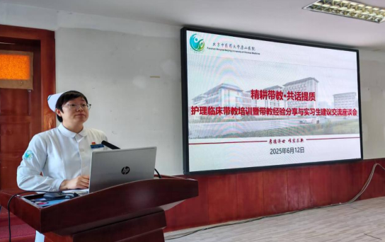 在经验交流环节,来自不同临床科室的5位优秀教学助理代表,紧扣”以教促学”主题,将丰富的带教经验转化为生动案例。他们从护生职业素养培养、临床技能规范化带教、中西医护理思维融合等多维度展开分享,现场金句频出,引发阵阵共鸣。