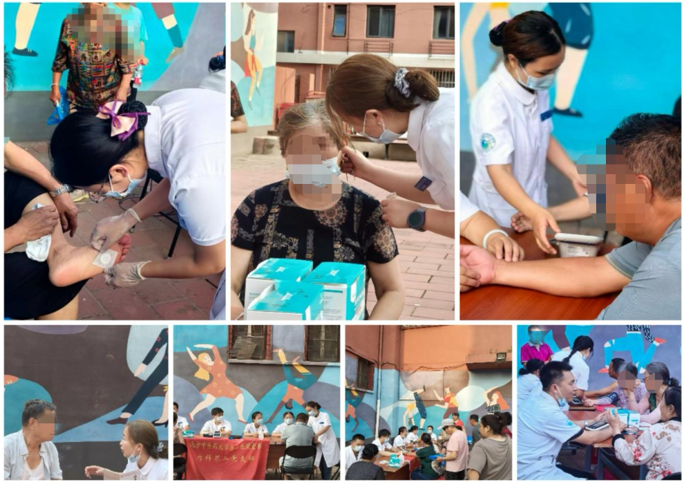 抵达社区后,医护团队迅速分工协作,高效搭建起临时义诊台。设置了健康咨询,中医切诊,血压检测,开展耳穴压丸,穴位贴敷等中医适宜技术治疗,以及发放宣教材料等,为居民提供免费诊疗服务。