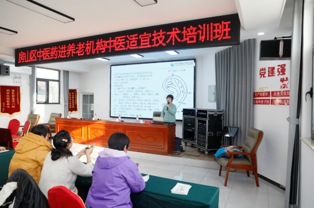 为积极应对人口老龄化,深化医养结合发展,2025年11月28日,由房山区卫生健康委员会、房山区民政局共同组织,房山区养老协会与北京中医药大学房山医院联合承办的“中医药适宜技术进养老机构”培训班,在韩村河镇龙门生态园如期举办。来自全区31家养老机构的50余名一线护理及管理人员参加了此次培训,为提升全区医养结合服务质量注入了新的“中医动能”。
