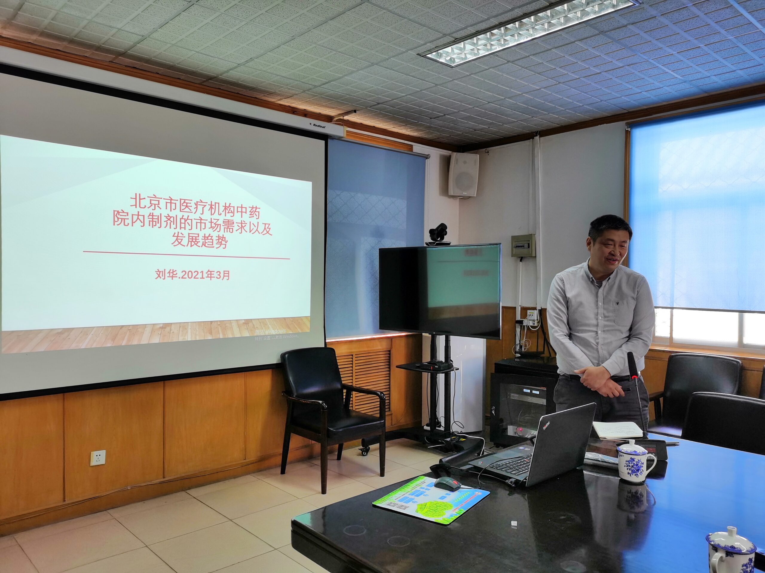 2021年4月14日下午,我院在办公楼三楼会议室召开了医疗机构中药制剂研发研讨会。本次研讨会邀请了北京中西医结合学会成果转化委员会主委,北京市中药研究所原副所长、科研项目部主任战嘉怡老师和北京中西医结合学会成果转化委委员、北京宫廷医学研究会药茶分会执行会长刘华老师。院长孙鲁英、副院长杨景柳、张红、傅春江以及“1+6+X”科室主任、科室骨干参加了会议,会议由杨景柳副院长主持。