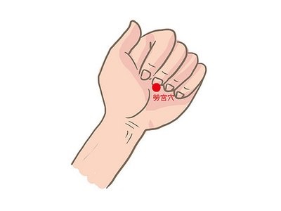 劳宫穴位于第2, 3掌骨中间。握拳时,中指指端下即是该穴。有清心安神、消肿止痒的作用,像中暑、心痛、烦闷、胸胁痛、口疮、舌烂、口臭,都可以按劳宫穴。揉这个穴可以使心情放松;心慌气短也可以按揉此穴予以缓解。