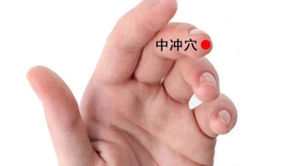 该穴位于中指指端的中央,有开窍醒脑、泄热清心的作用。像中暑、昏厥、中风昏迷、热病、吐泻、耳鸣、心痛等,都可以按摩中冲穴。中冲穴可以点刺出血,为急救要穴之一也可以用指甲掐或用指节格,相比之下,用指节格效果会更明显。同时,中冲穴也是泻心火的要穴,心火旺或口舌生疮,不妨按揉该穴。按摩时,以左手手指甲掐按右手上的中冲穴,约1分钟即可,再换右手掐按左手中冲穴1分钟。