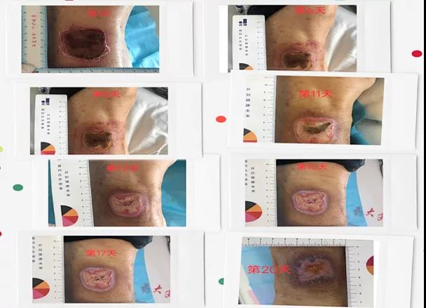 科室伤口管理员第一时间联系了伤口护理学组会诊,并在伤口护理学组的指导下每日换药。经过十多天精心照料,王大爷创面明显缩小,王大爷和家人十分欣喜。