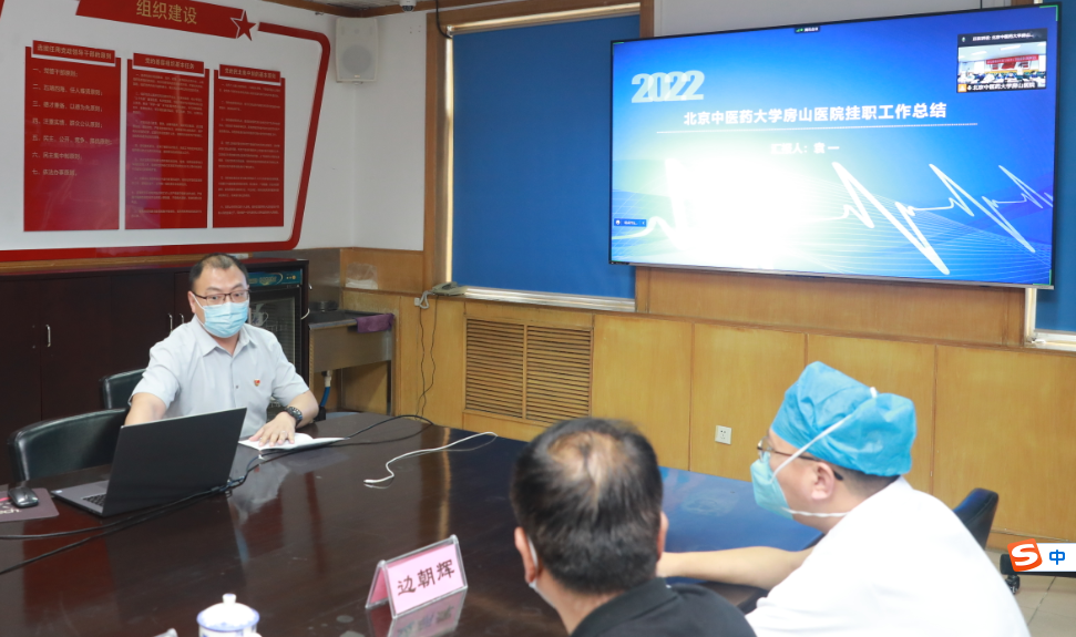 2022年6月22日下午,北京中医药大学房山医院召开第十三批“人才京郊行”挂职干部总结考核工作会,对2021年来医院挂职的副院长袁一同志一年以来的工作情况进行总结。东城区卫生健康委二级调研员张家惠、北京第六医院党委副书记、院长卢艳丽、区委组织部副部长赵磊、区委组织部人才科科长申奇锦、区委卫生健康工委党委副书记张文艳线上参加会议,医院领导班子成员以及相关科室主任等现场参加了会议,会议由党委书记郭书文主持。